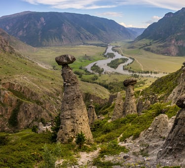 Nestled in southeastern Kazakhstan, the Altai Mountains offer a pristine blend of nature and ancient history.